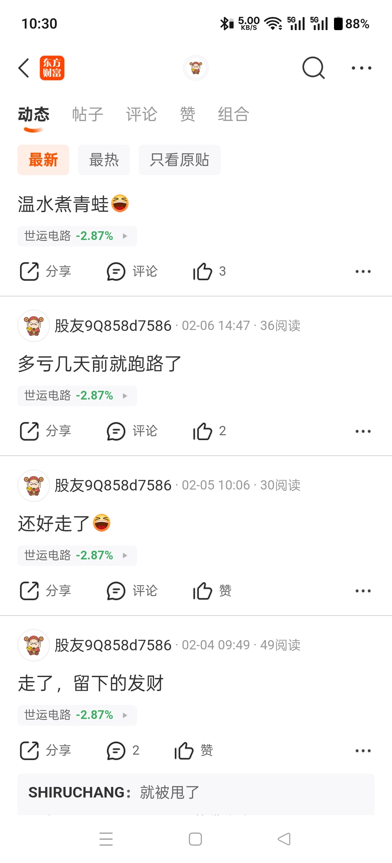温馨提示: 1.根据《证券法》规定,禁止编造、传播虚假信息或者误导性信息,扰乱证券市场;2.用户在本社区发表的所有资料、言论等仅代表个人观点,与本网站立场无关,不对您构成任何投资建议。用户应基于自己的独立判断,自行决定证券投资并承担相应风险。《东方财富社区管理规定》