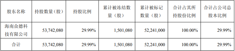 金鸿顺:控股股东所持全部股份被司法轮候冻结