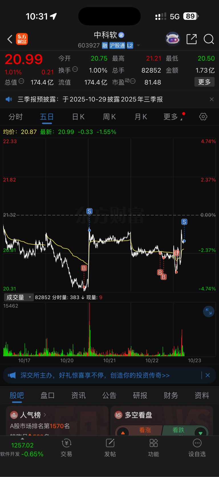 $中科软(SH603927)$ 使劲墨迹,我就使劲T你