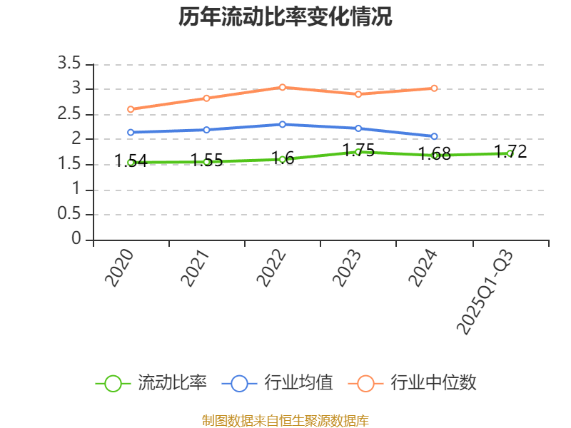 2025年前三季度,公司流动比率为1.72,速动比率为1.48。