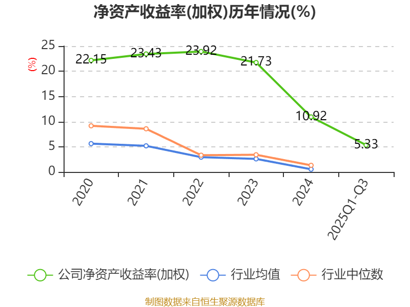 盈利能力方面, 2025年前三季度公司加权平均净资产收益率为5.33%,同比下降3.55个百分点。公司2025年前三季度投入资本回报率为4.46%,较上年同期下降3.86个百分点。