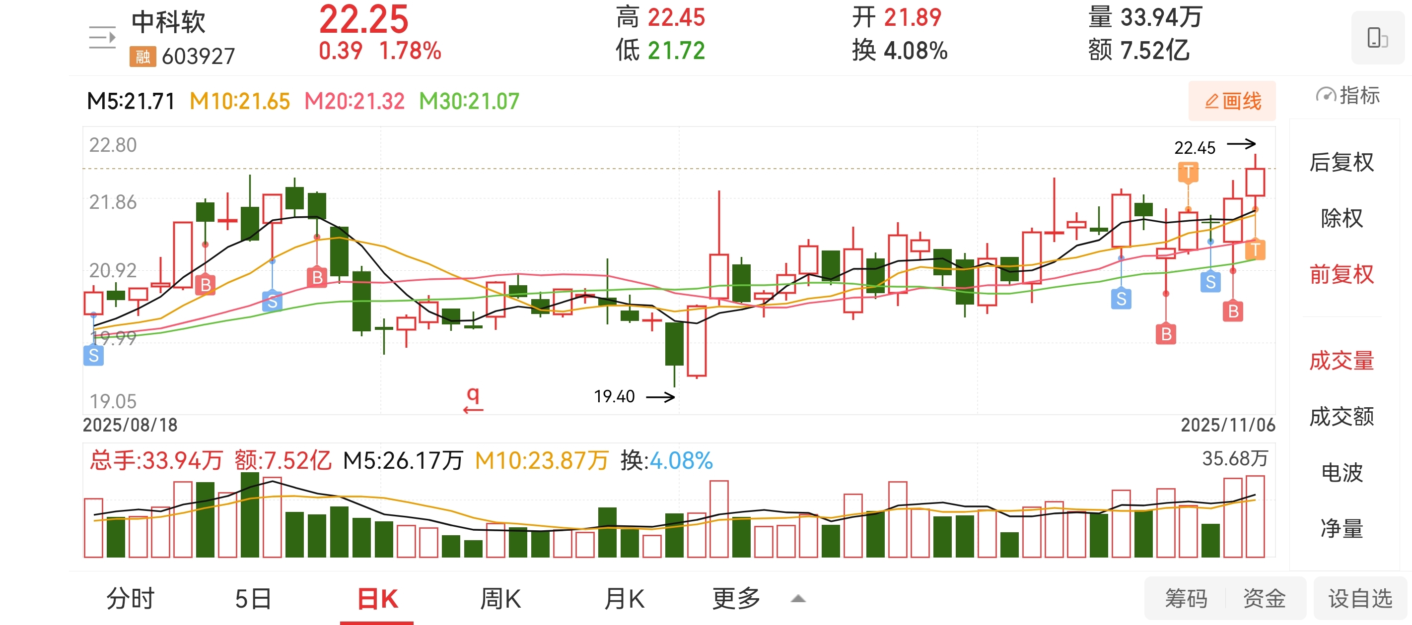 $中科软(SH603927)$ 站稳22.21,下一个平台是24,均线多头排列的真好呀