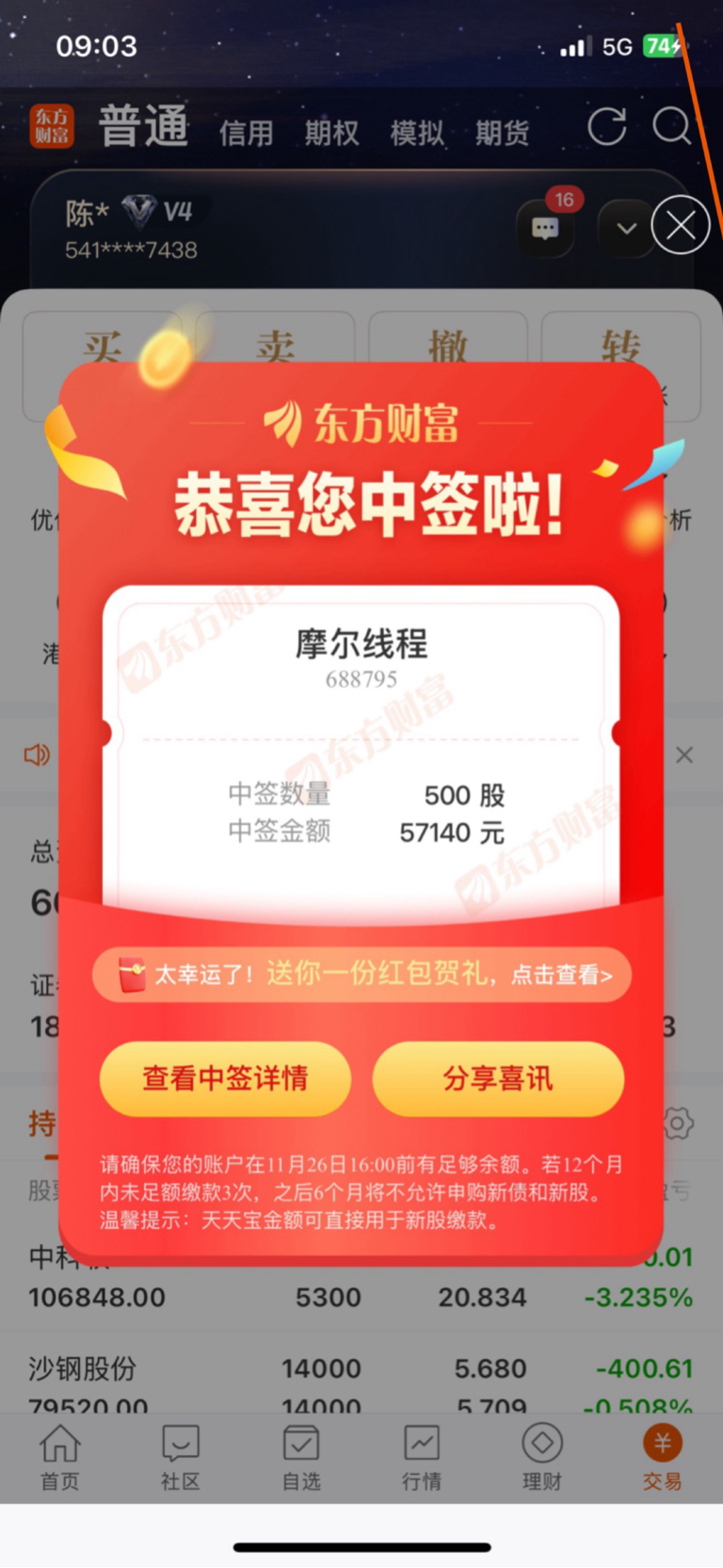 $中科软(SH603927)$ 买中科就是为了打新股的,虽然亏钱了还是要感谢你