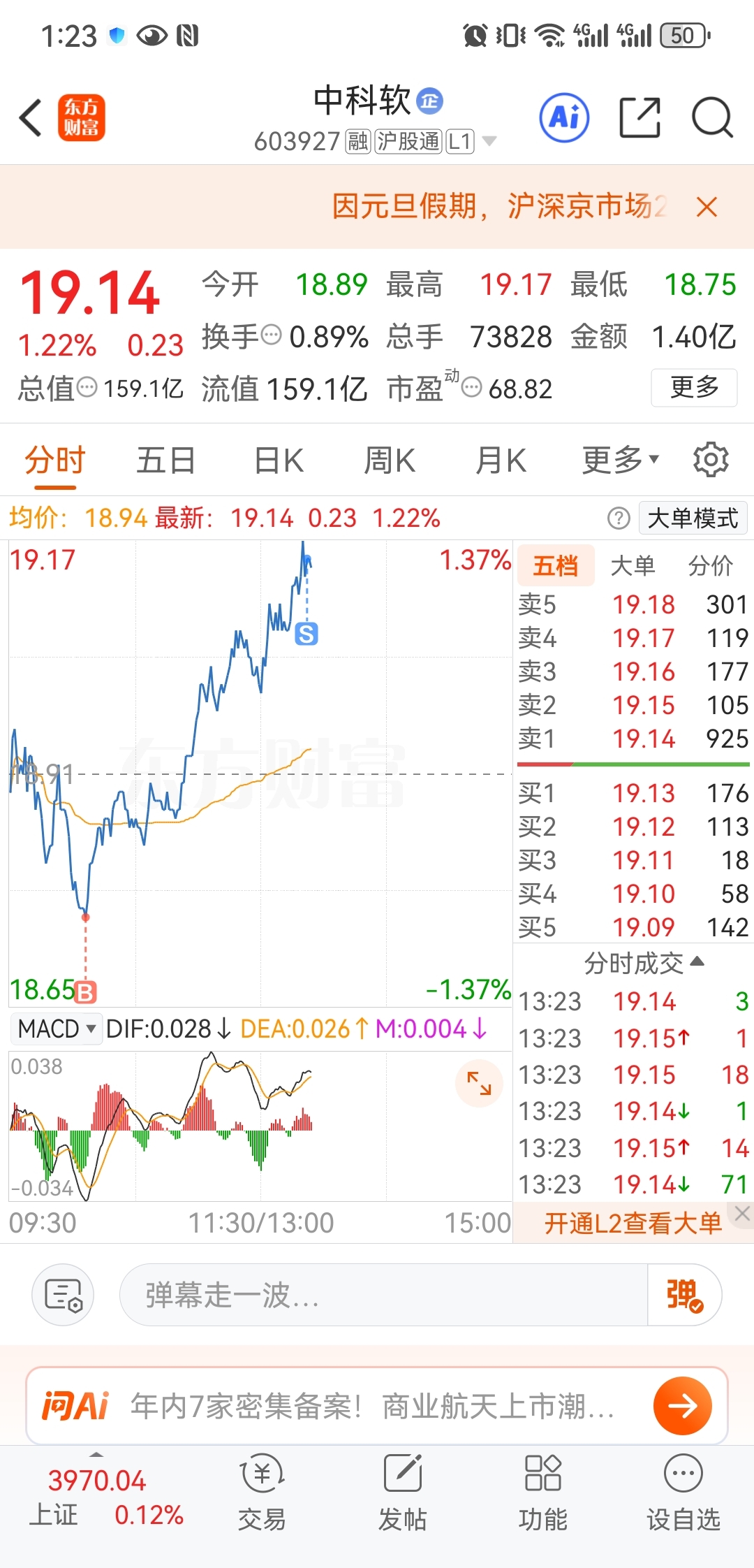 $中科软(SH603927)$ 也是成功T一波