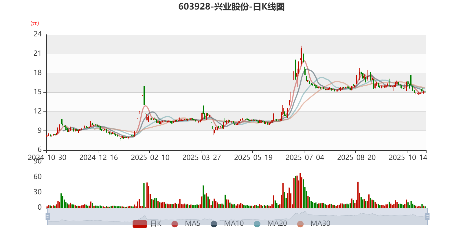 以10月29日收盘价计算,兴业股份目前市盈率(TTM)约为50.64倍,市净率(LF)约2.55倍,市销率(TTM)约2.51倍。