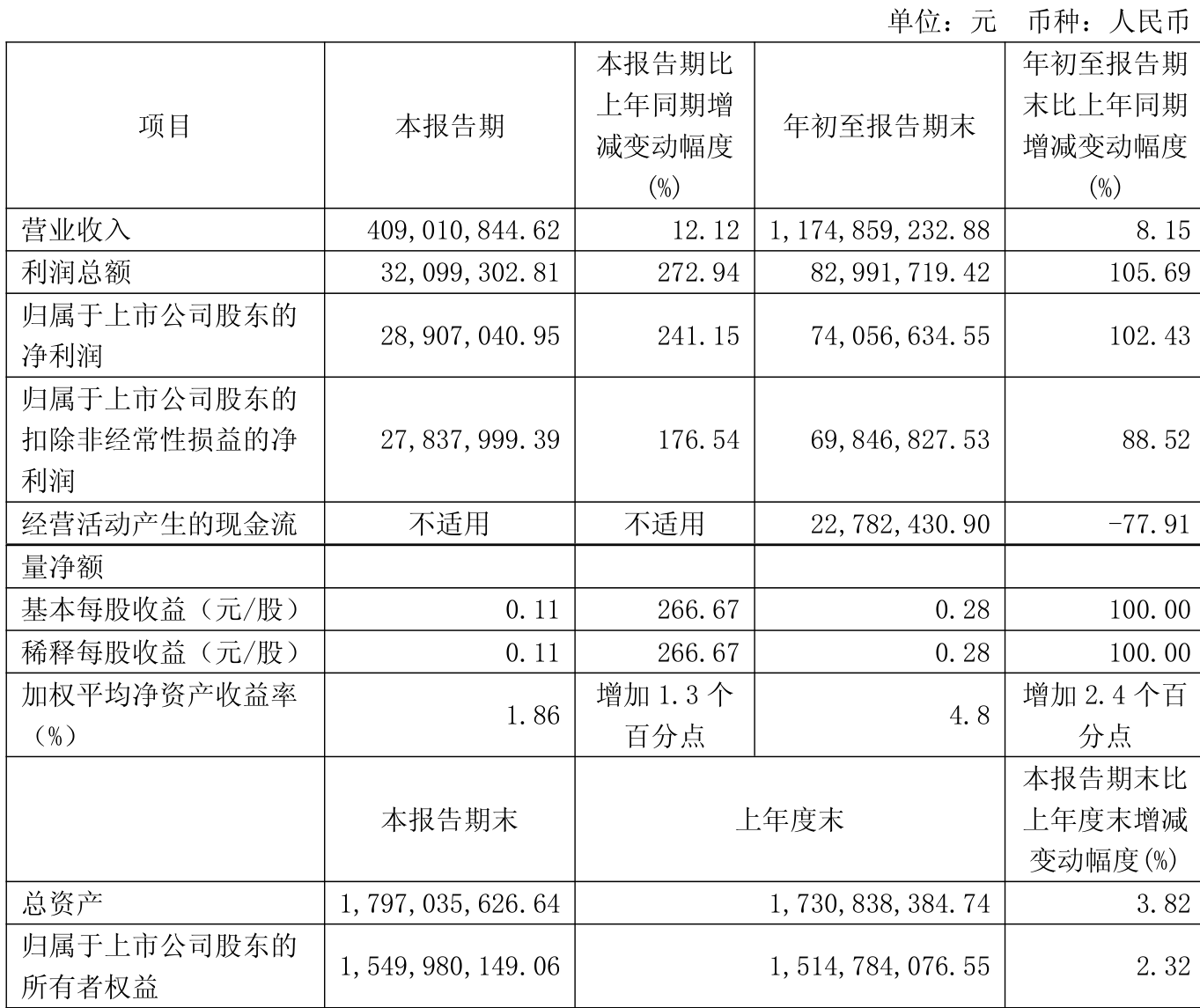 中证智能财讯兴业股份(603928)10月30日披露2025年第三季度报告。前三季度公司实现营业总收入11.75亿元,同比增长8.15%;归母净利润7405.66万元,同比增长102.43%;扣非净利润6984.68万元,同比增长88.52%;经营活动产生的现金流量净额为2278.24万元,同比下降77.91%;报告期内,兴业股份基本每股收益为0.28元,加权平均净资产收益率为4.80%。