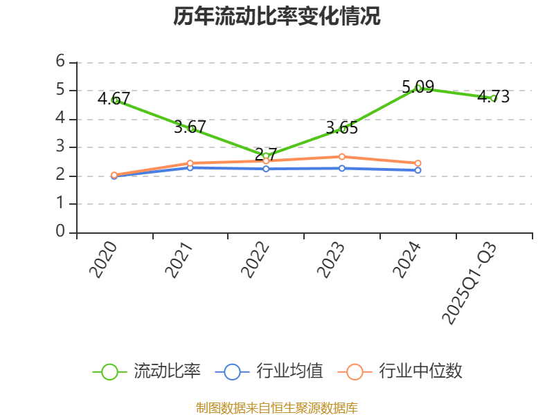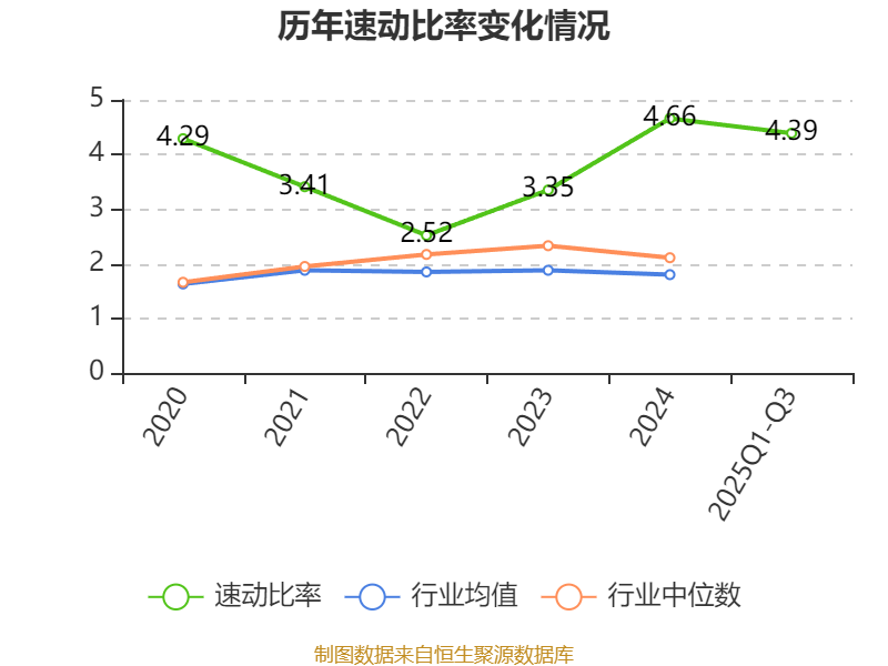 2025年前三季度,公司流动比率为4.73,速动比率为4.39。