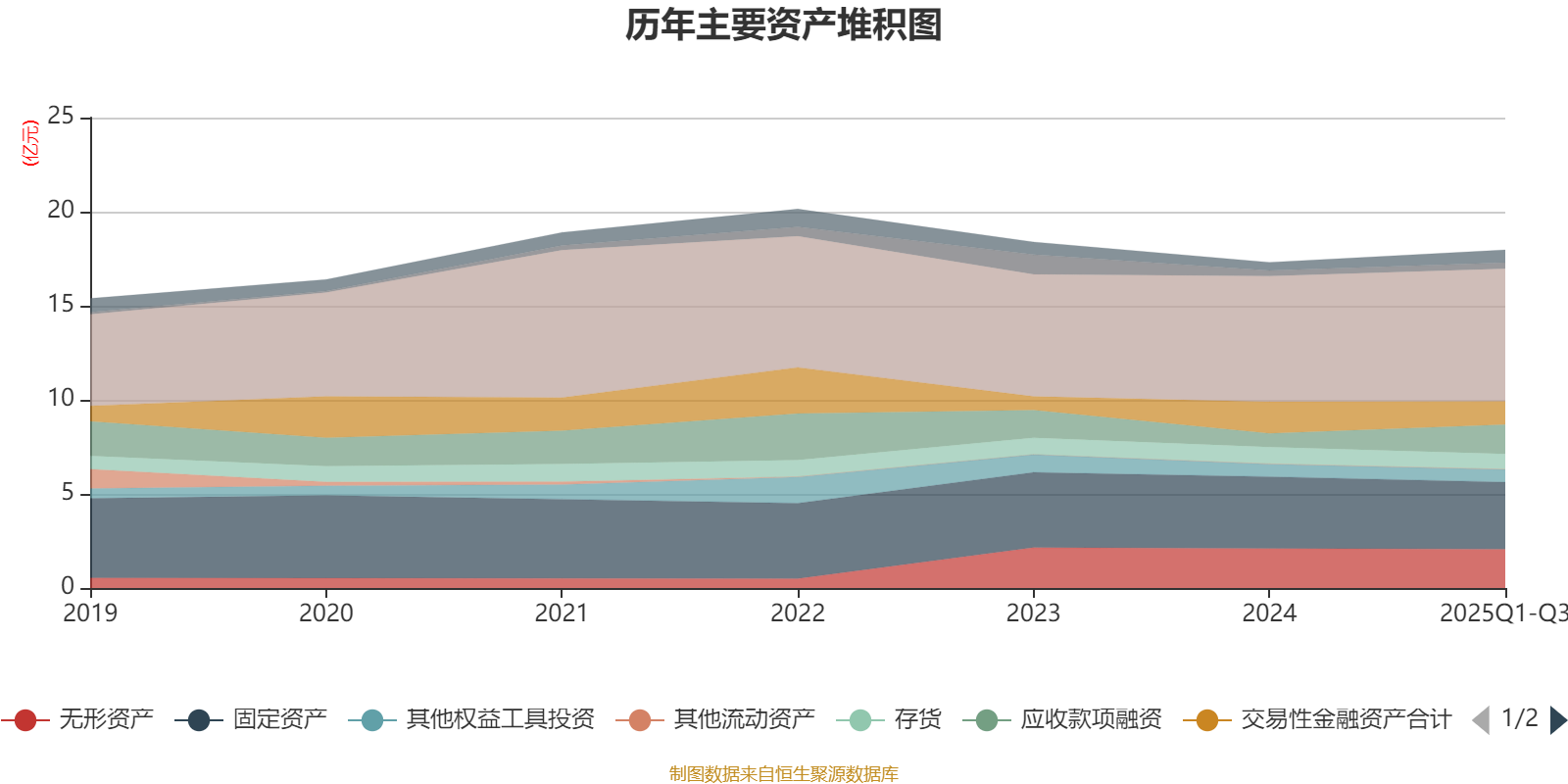 资产重大变化方面,截至2025年三季度末,公司应收款项融资较上年末增加114.91%,占公司总资产比重上升4.48个百分点;交易性金融资产合计较上年末减少26.2%,占公司总资产比重下降2.81个百分点;固定资产较上年末减少6.62%,占公司总资产比重下降2.22个百分点;无形资产较上年末减少1.64%,占公司总资产比重下降0.64个百分点。