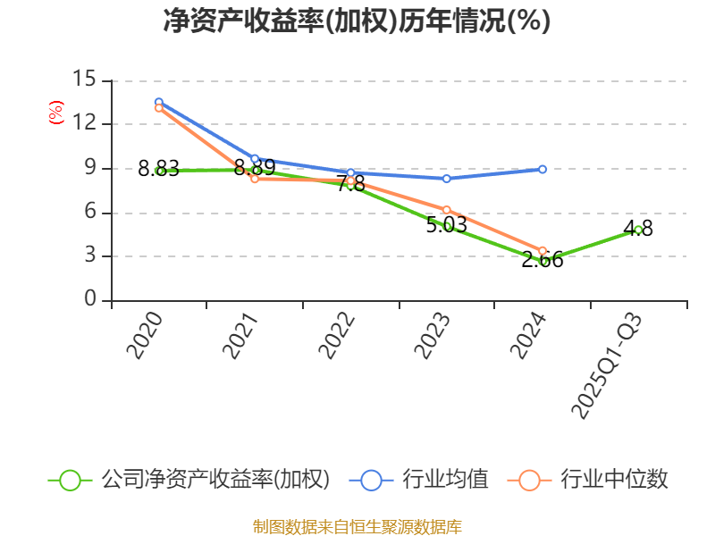 盈利能力方面, 2025年前三季度公司加权平均净资产收益率为4.8%,同比上升2.4个百分点。公司2025年前三季度投入资本回报率为4.85%,较上年同期上升2.46个百分点。