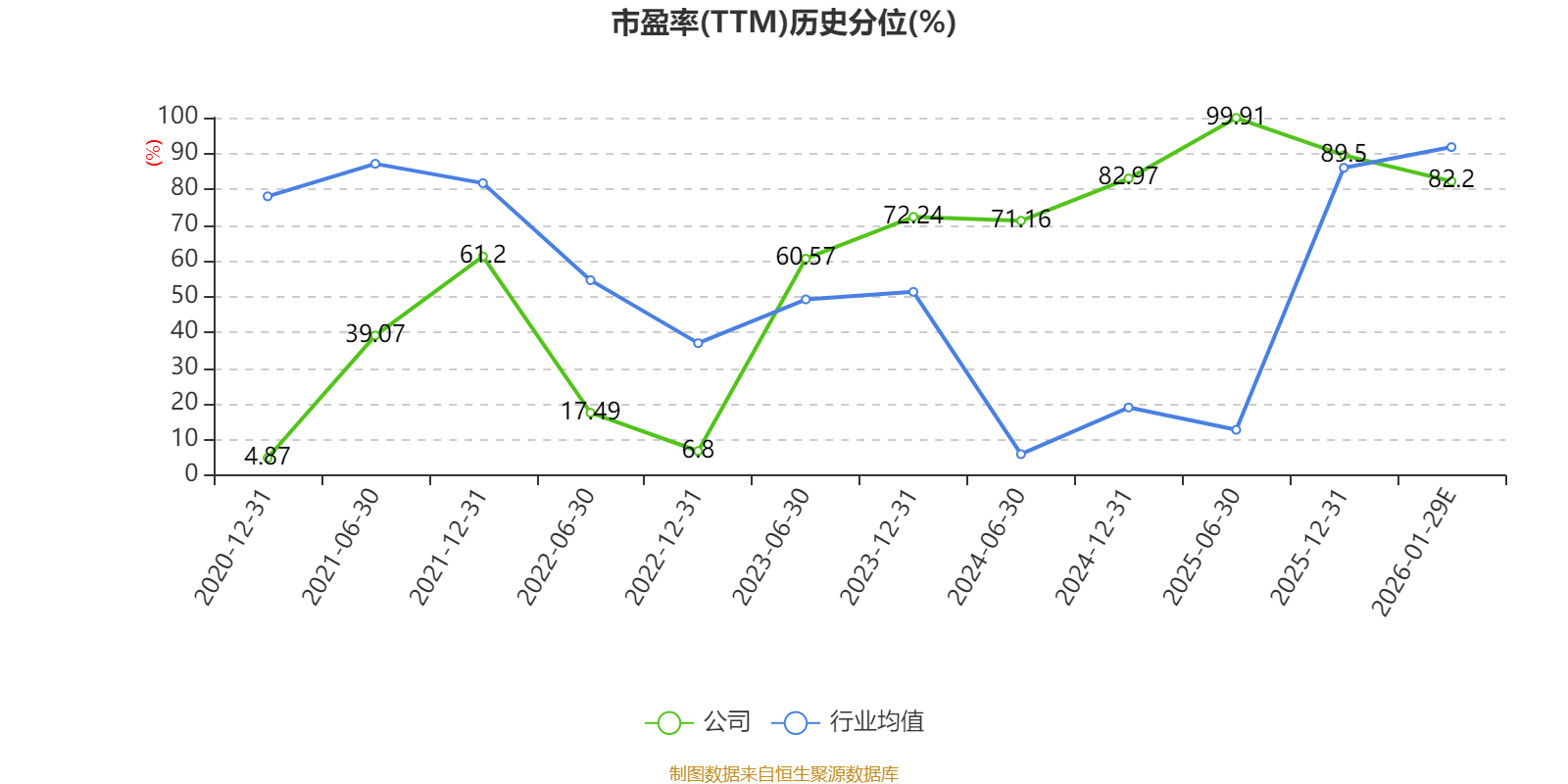 以本次披露业绩预告均值计算,公司近年市盈率(TTM)图如下所示: