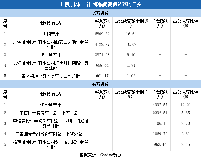 龙虎榜数据显示,今日买一为机构席位,该席位净买入6809.32万元。除此之外还有值得买、德力佳、N南网数字等7只个股榜单上出现了机构的身影,其中3家呈现机构净买入,获净买入最多的是德力佳,净买额为1.25亿元;4家呈现机构净卖出,其中遭净卖出最高的为值得买,净卖额为1.64亿元。