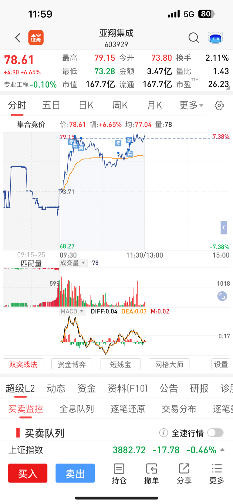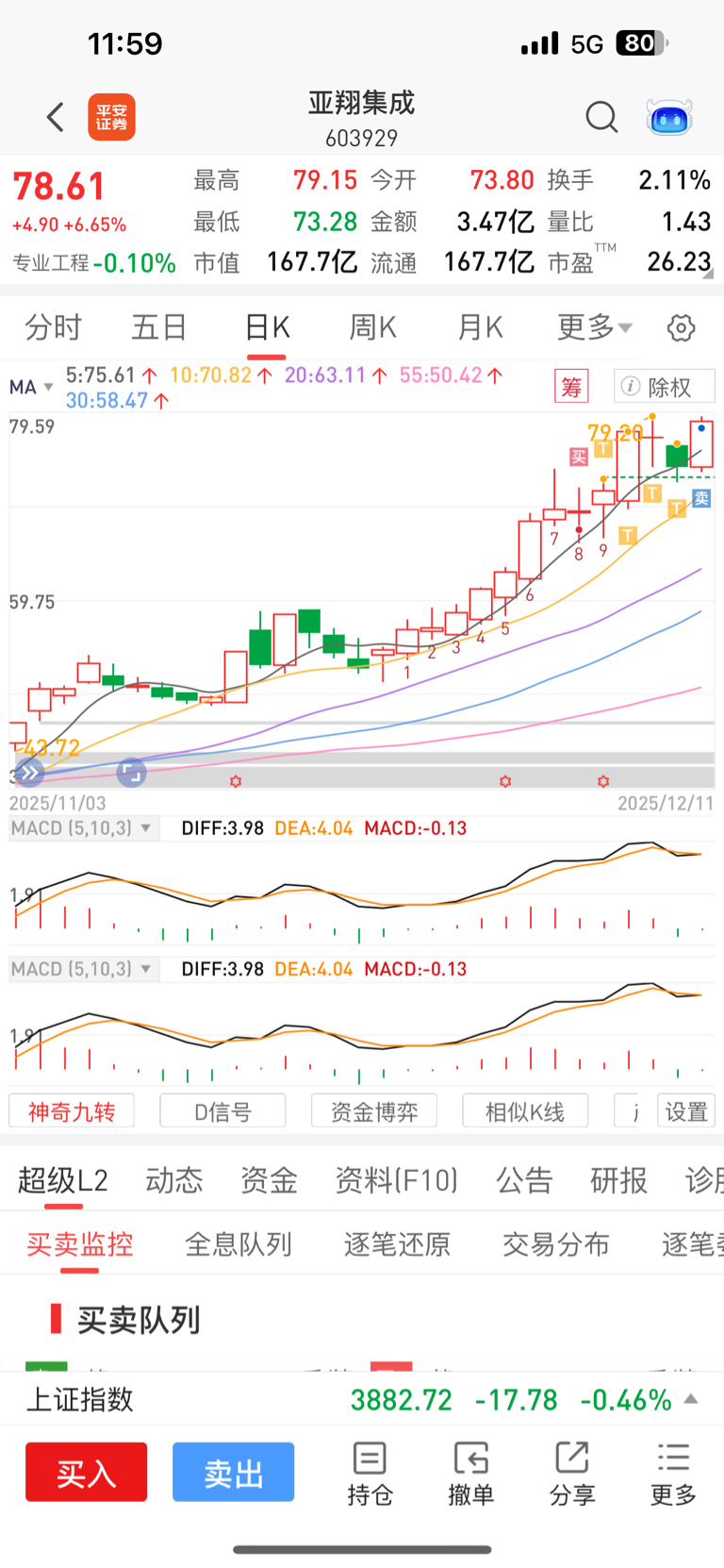 昨天底部加到半仓,今天高点陆续兑现,找机会