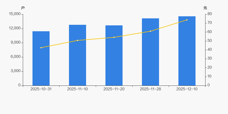 2025年10月31日至今,公司股东户数显著增长,区间涨幅为27.60%。2025年10月31日至2025年12月10日区间股价上涨73.60%。