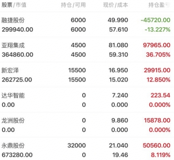目前个人持有、融捷股份、亚翔集成、新宏泽、永鼎股份、胜不骄败不馁,祝所有老铁也能所有收获。