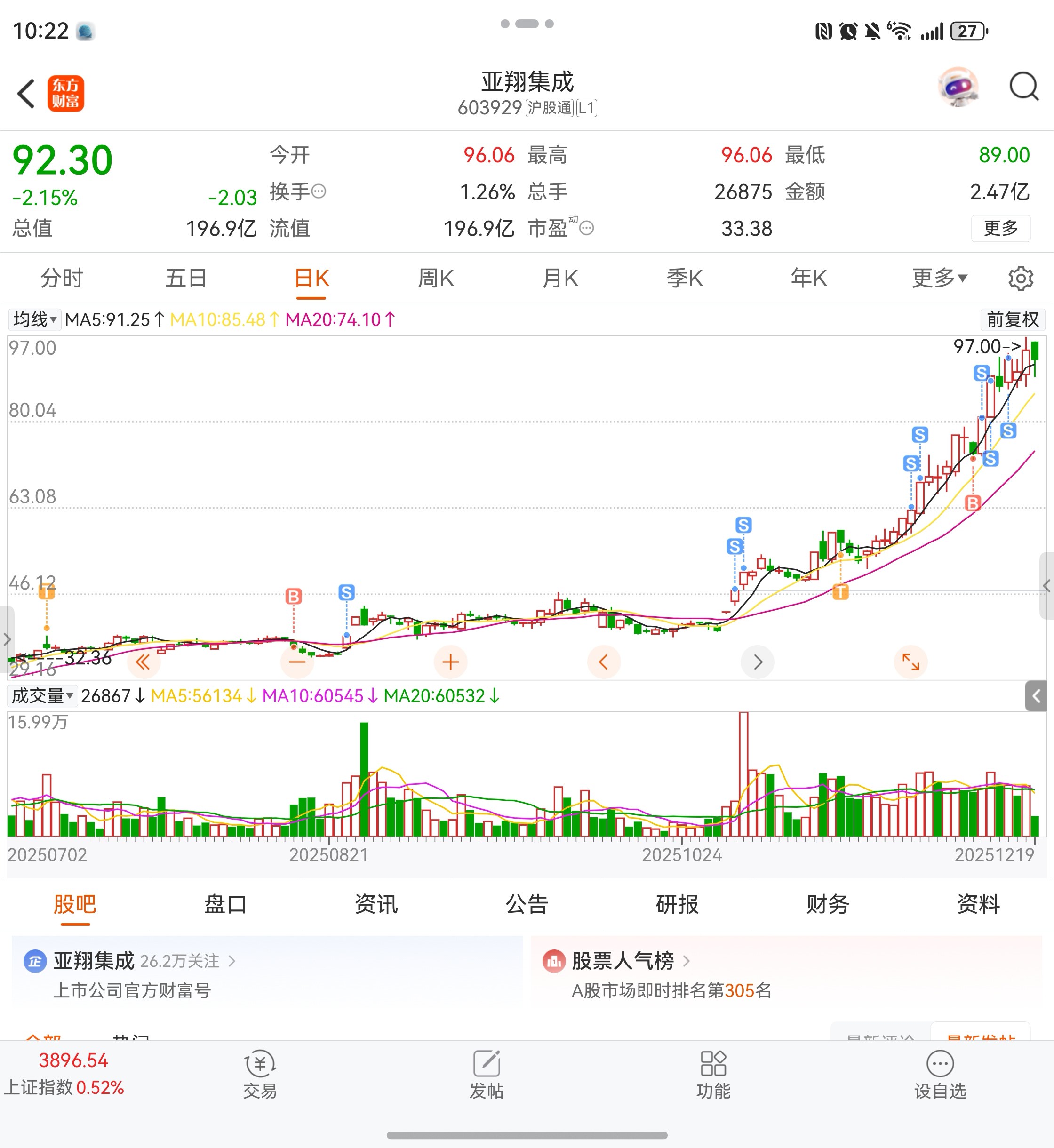 两波行情操作复盘后的进化,再看今年亚翔和赛威就知道我为什么会卖飞了。识别行情也是可以帮你多赚盈利的,核心还是在第一步选股,识别牛股是核心,骑牛技术差点不影响你赚钱。我能拿3年以上的票都是长期筛选出来的。