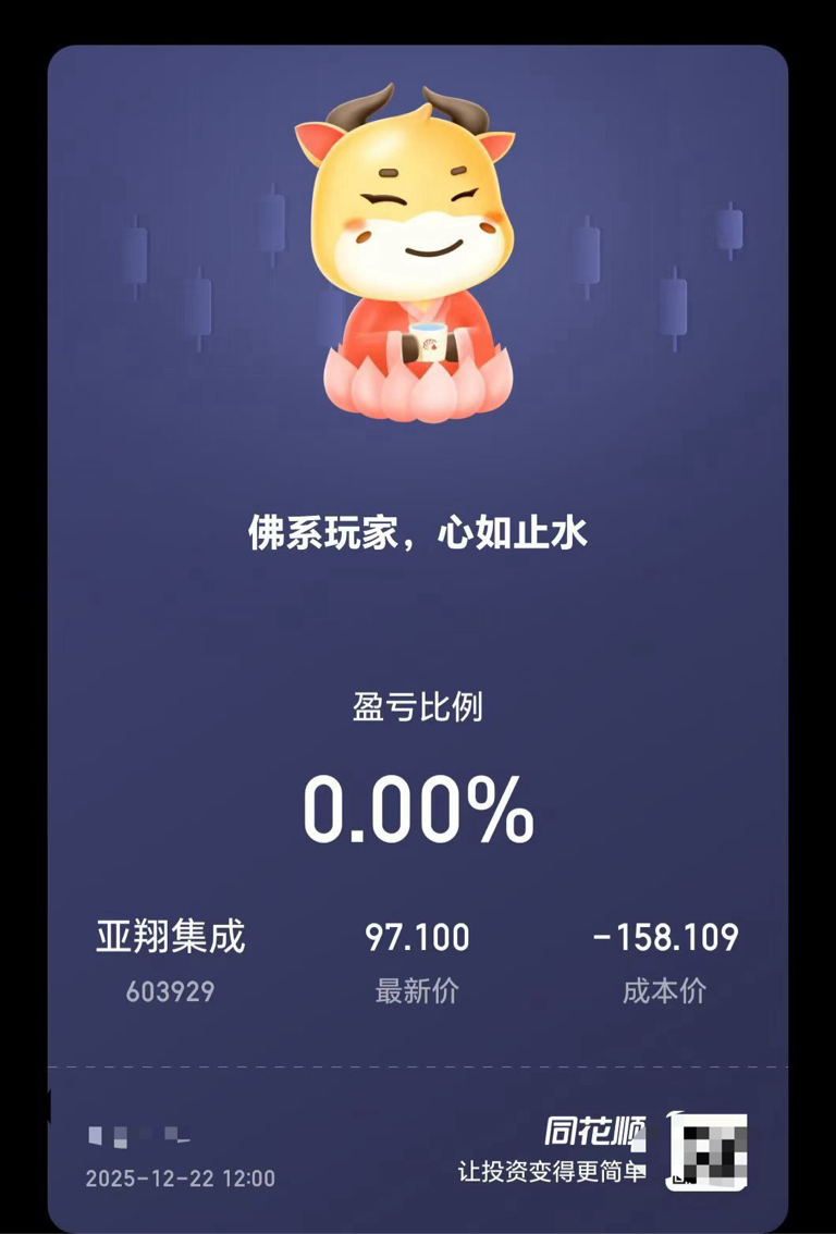 喜欢这句话:佛系玩家,心如止水,今天清仓,留下一百股做个纪念,感谢亚翔集成。