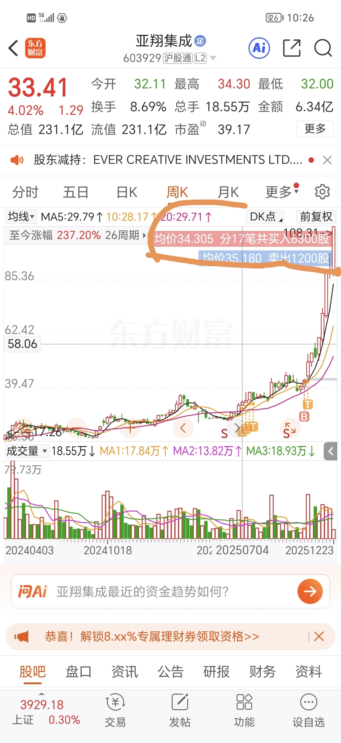 $亚翔集成(SH603929)$ 34块买了6300股。哎,太离谱了,现在洁净室火了,以前亚翔跌的时候贴吧里还有说他就是搞建筑的,没想到现在网上又开始唱多这个票,真是来得早不如来的巧