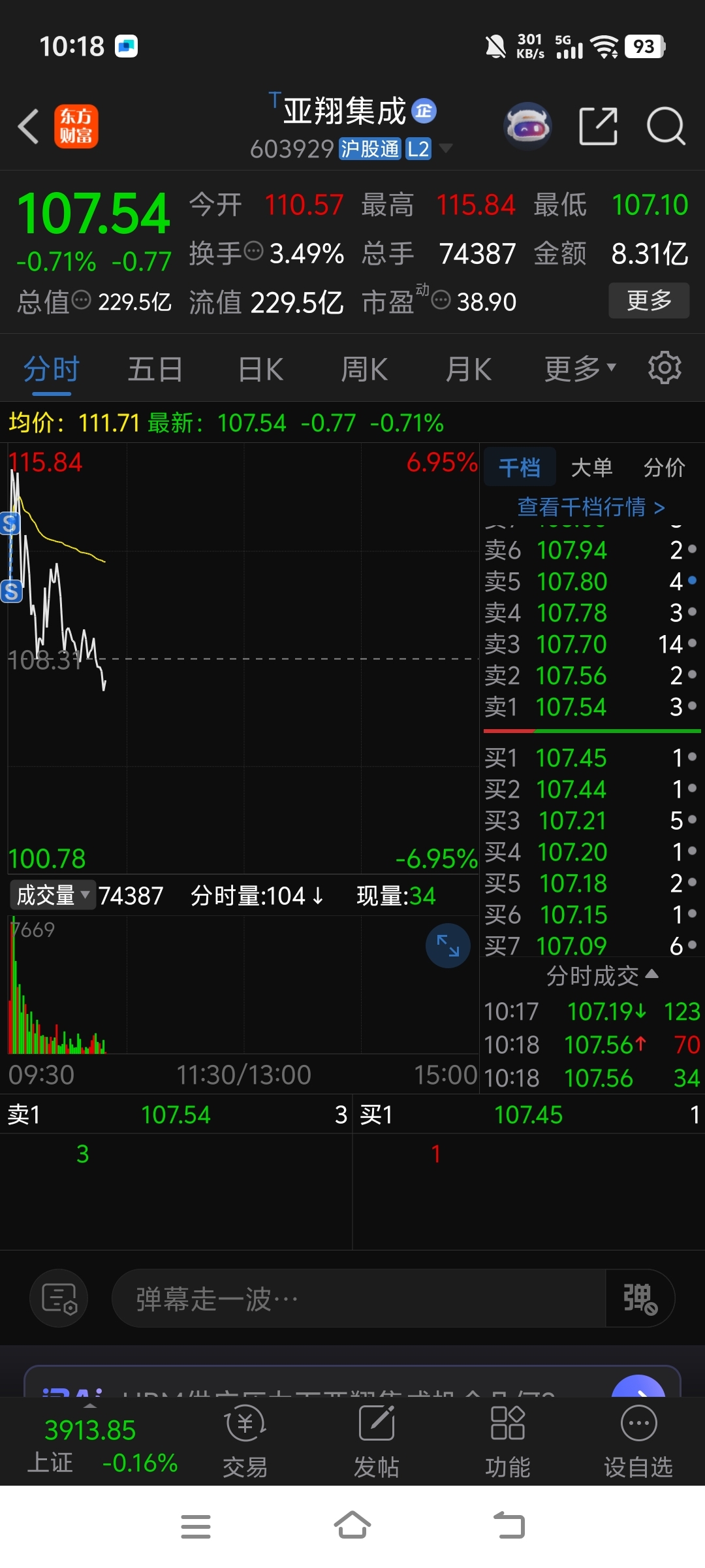 $亚翔集成(SH603929)$ 短期回调,暂时再见啦