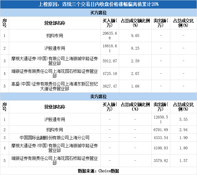 上交所2026年1月6日交易公开信息显示,亚翔集成因属于连续三个交易日内收盘价格涨幅偏离值累计20%而登上龙虎榜。亚翔集成当日报收115.56元,涨跌幅为24.26%,偏离值达21.27%,换手率3.47%,振幅7.83%,成交额22.81亿元。