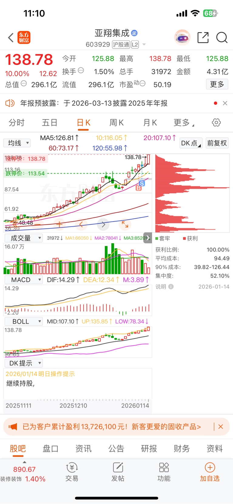 $亚翔集成(SH603929)$ 醉了,没格局的我