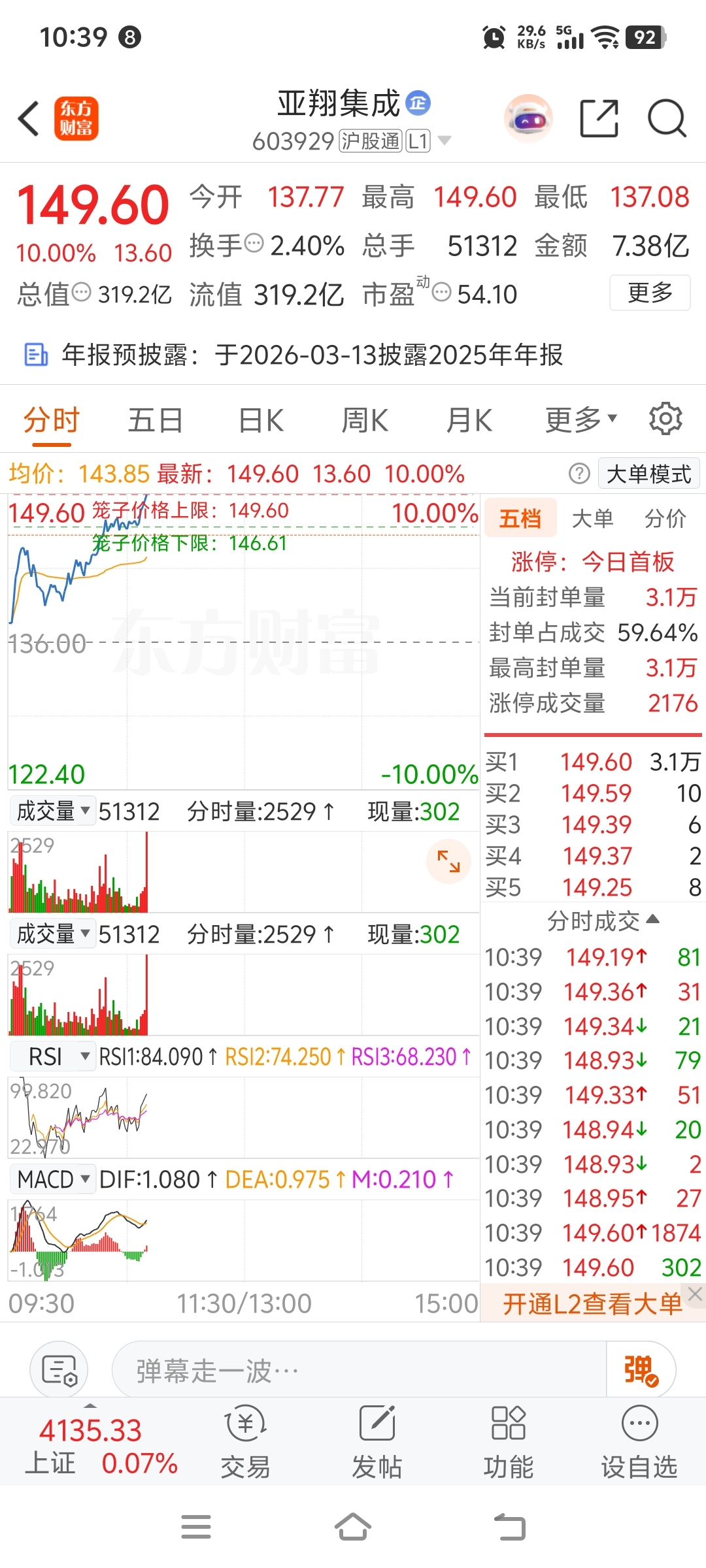 $亚翔集成(SH603929)$ 涨停能不下来就行