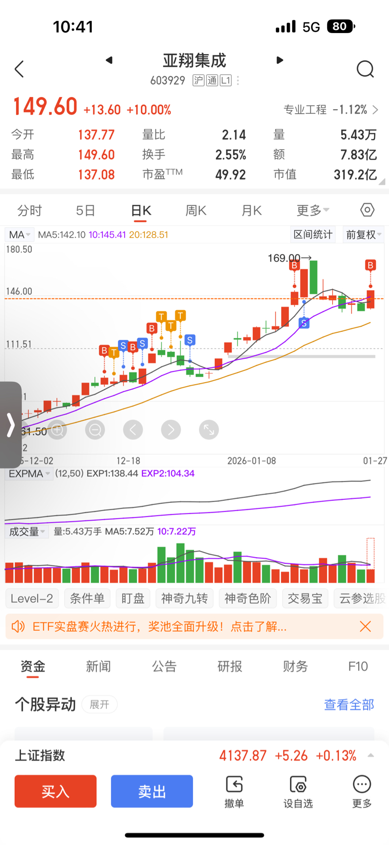 $亚翔集成(SH603929)$ 接回来了