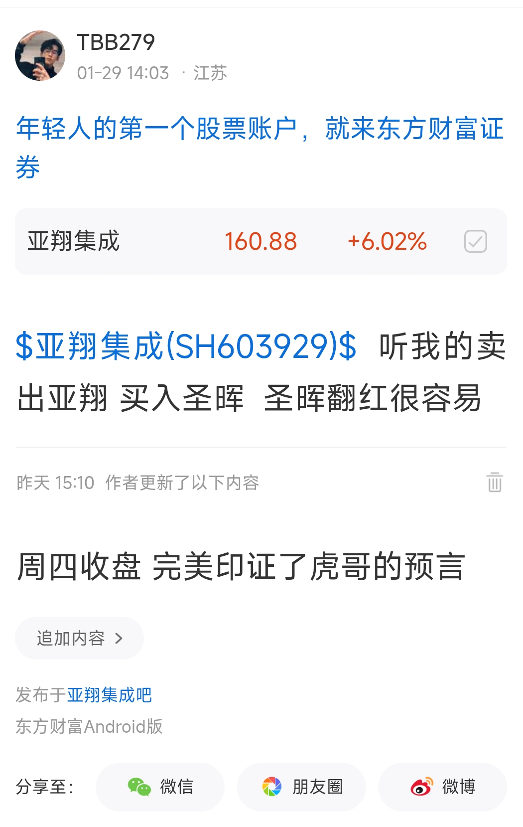 温馨提示: 1.根据《证券法》规定,禁止编造、传播虚假信息或者误导性信息,扰乱证券市场;2.用户在本社区发表的所有资料、言论等仅代表个人观点,与本网站立场无关,不对您构成任何投资建议。用户应基于自己的独立判断,自行决定证券投资并承担相应风险。《东方财富社区管理规定》