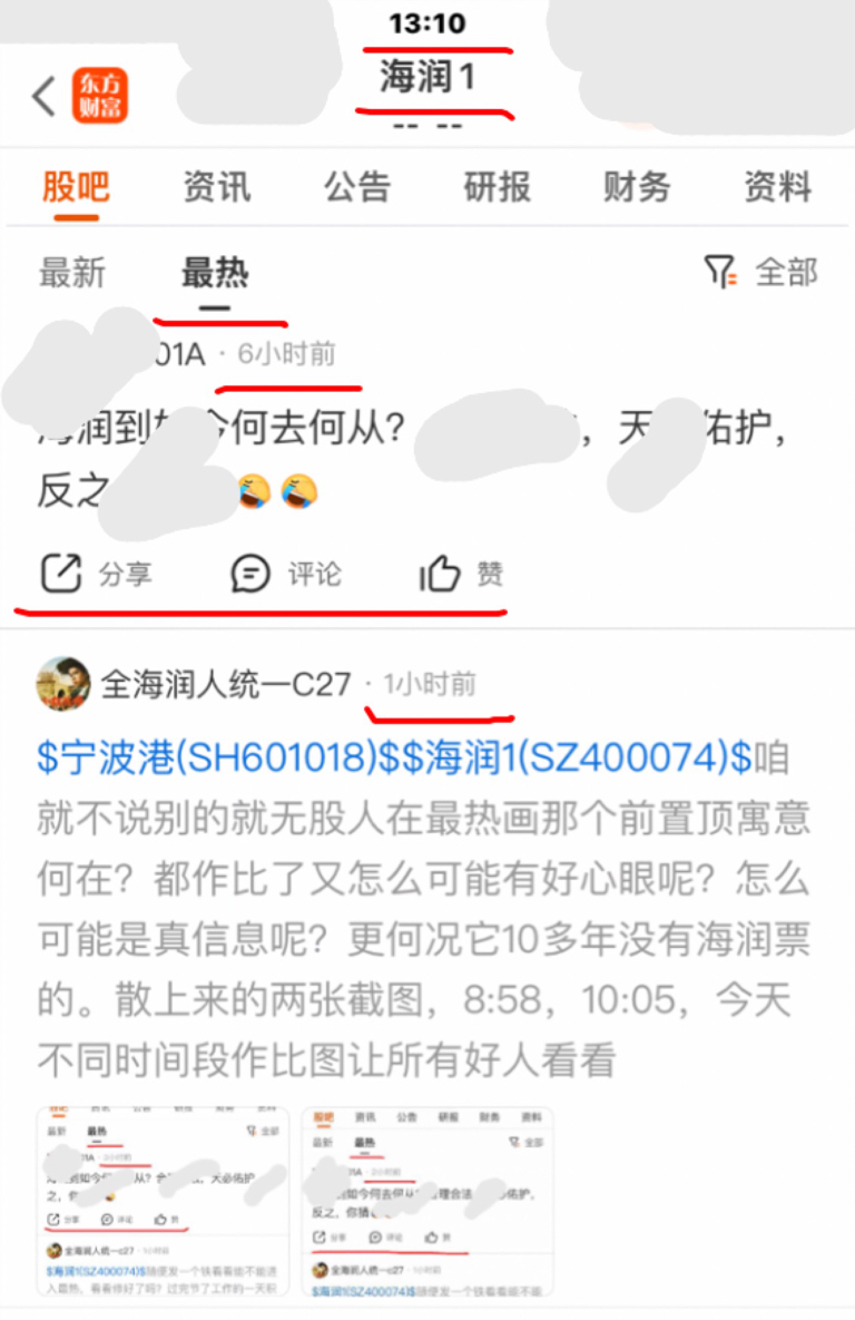 吧长,您好:无股人已经不断在海润1最热作比置顶,上来的截图显示13:10,A10