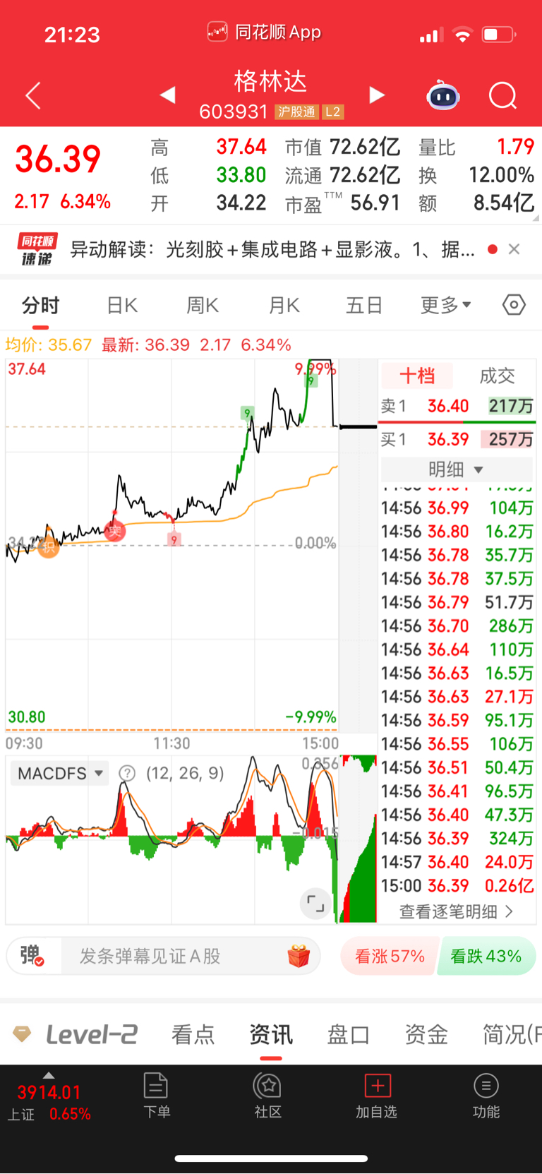 $格林达(SH603931)$ 不得不说这个庄是一个控盘高手,让你卖也不是,买也不是。