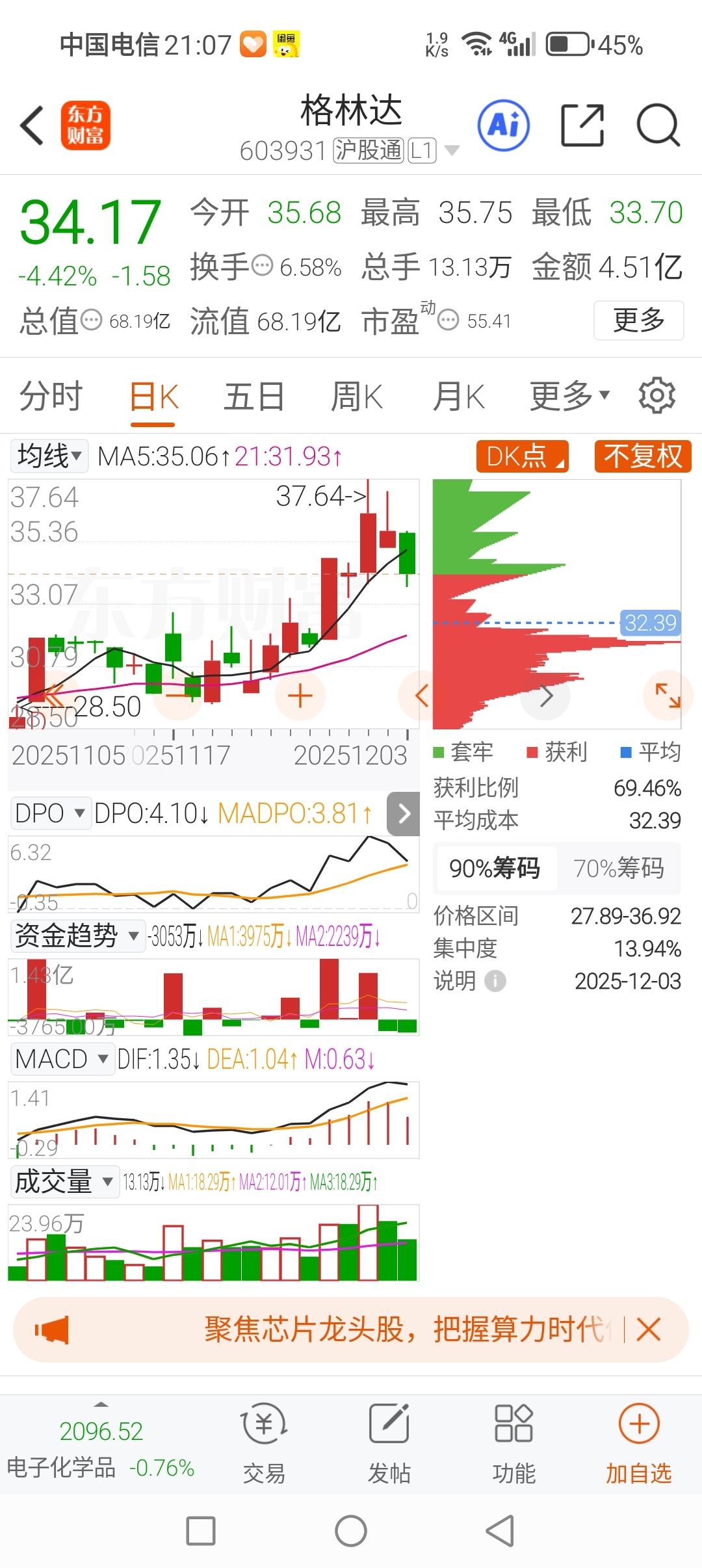 $格林达(SH603931)$ 早盘己买进,看看明天会不会涨,你们觉得明天会涨吗?