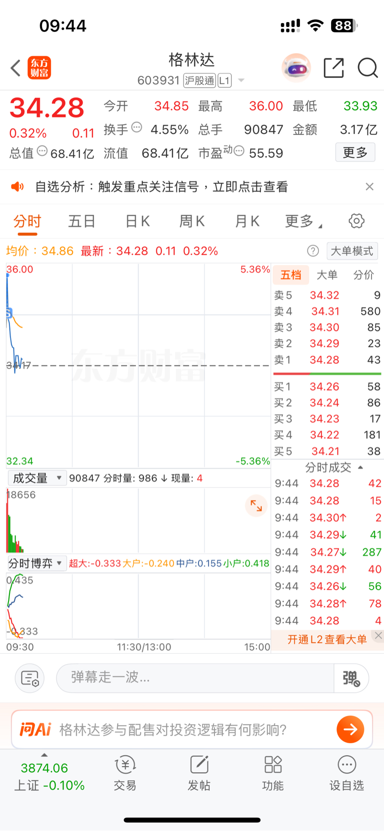 $格林达(SH603931)$ 高开的票我从来都不留恋