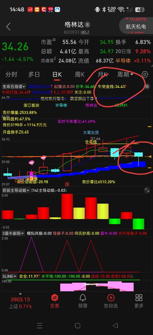 我之所以说34.43,是因为这是五线谱的第五条线的价位,它要是不上去,就不好