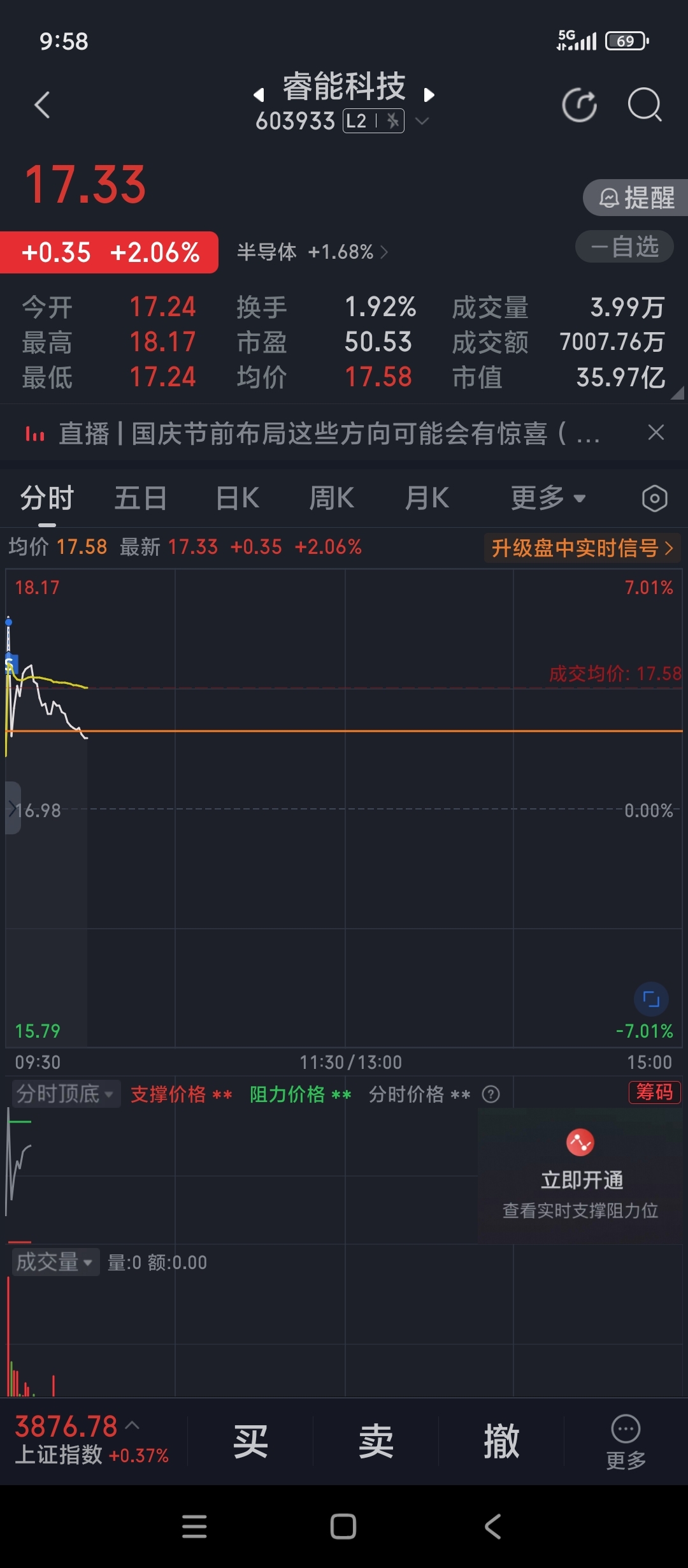 $睿能科技(SH603933)$ 没指望涨停,买入今天只希望冲破前面的高点