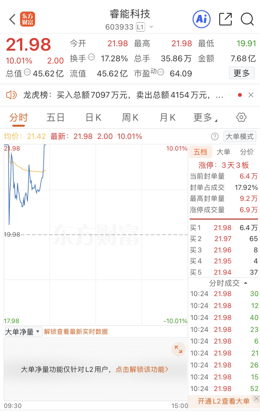 睿能科技涨停,这个低吸机会都跟上车了吧