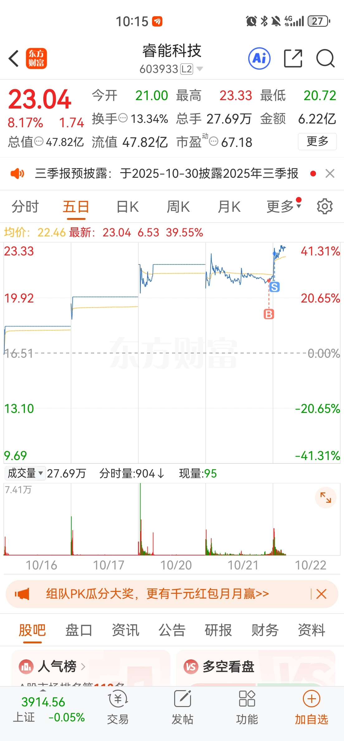 $睿能科技(SH603933)$ 昨天卖了亚太买的你,还算争气,可惜亚太封板了,塞翁失马,焉知非福。