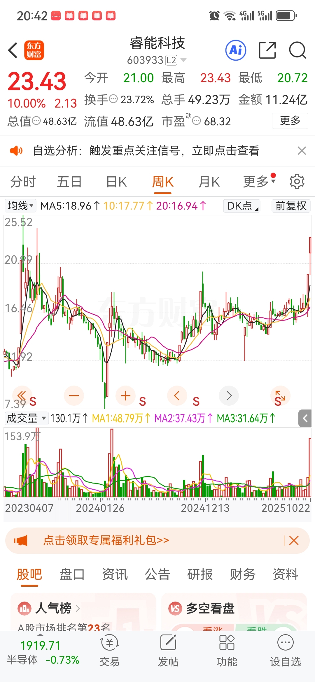 $睿能科技(SH603933)$ 咋一看,从周线上看还在底部呢