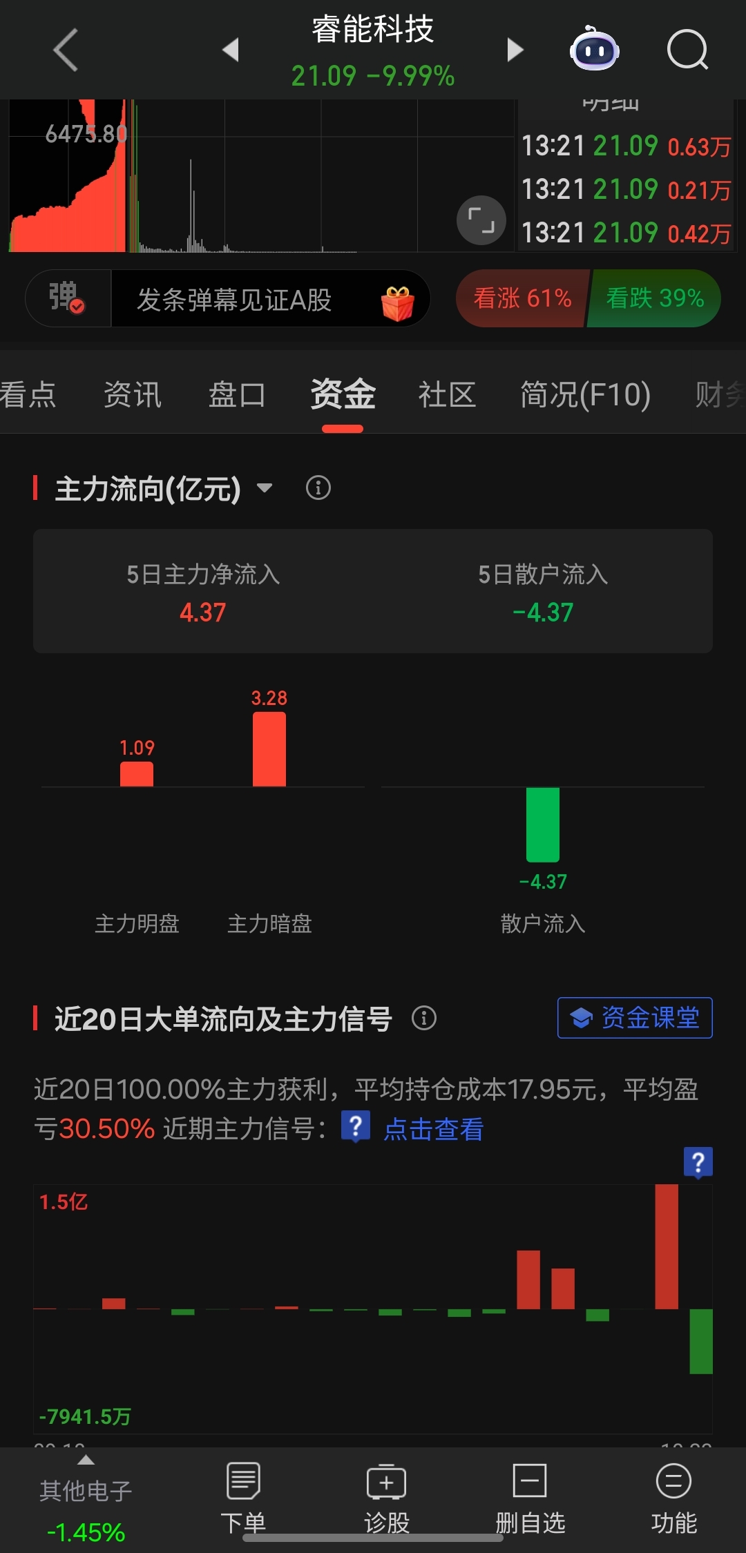 $睿能科技(SH603933)$ 大资金不作为,我们仨瓜俩枣能有啥办法