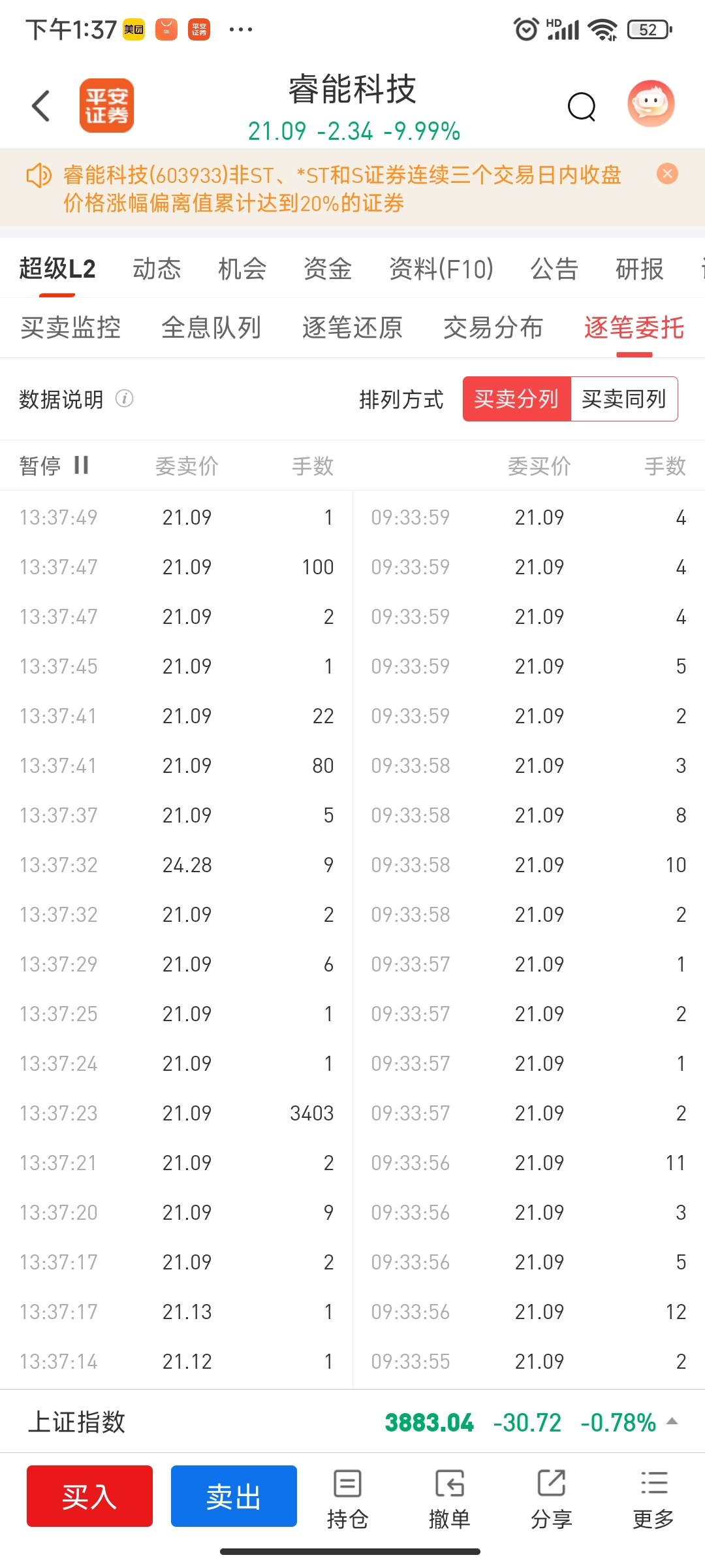 $睿能科技(SH603933)$ 9999跑不脱,3400来凑热闹,添堵。
