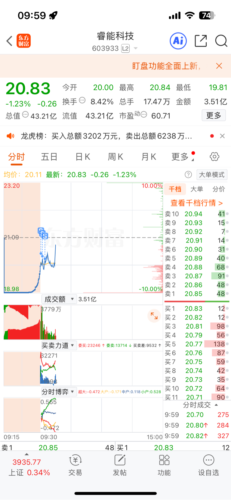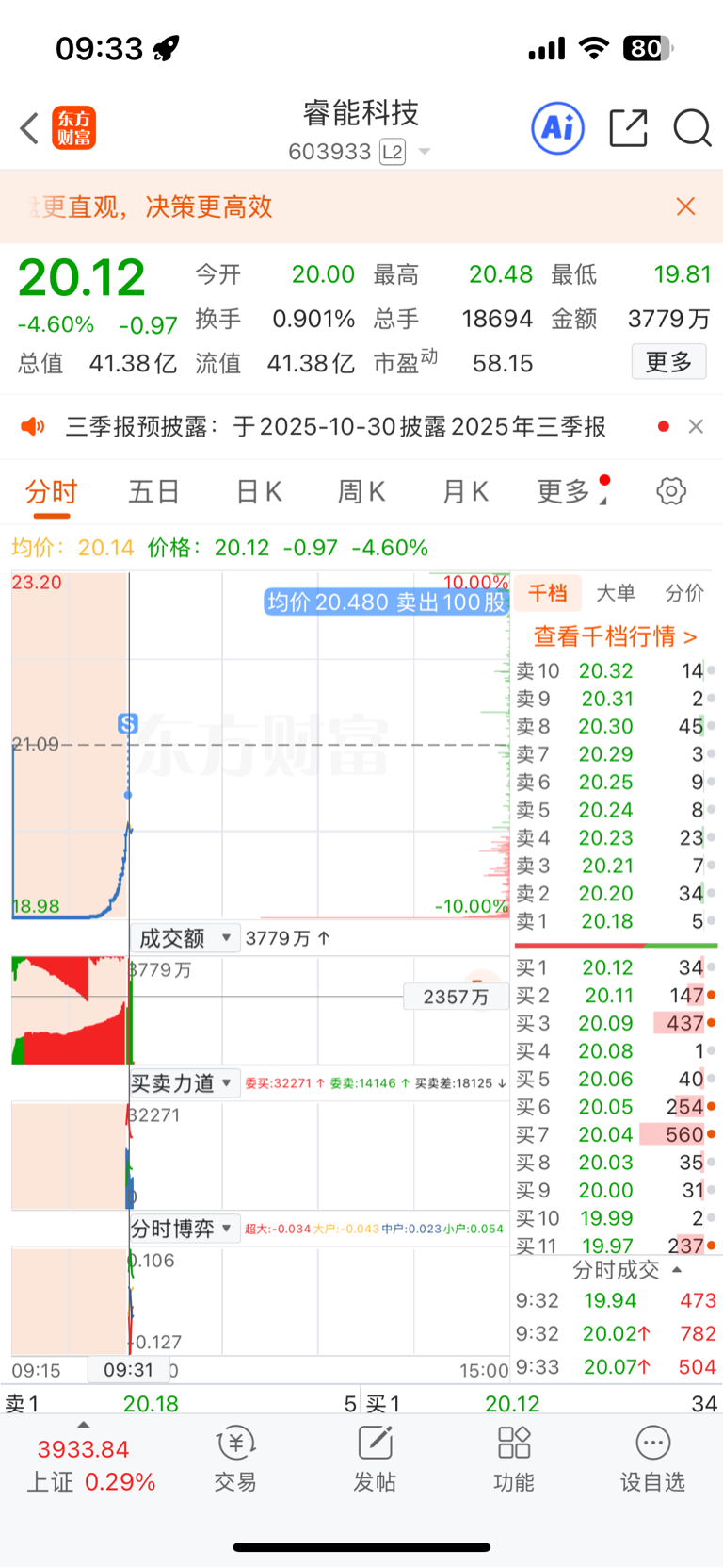早上挂20.48出,结果成交100股,还有几千股没出去,最后20.3出了,还卖了
