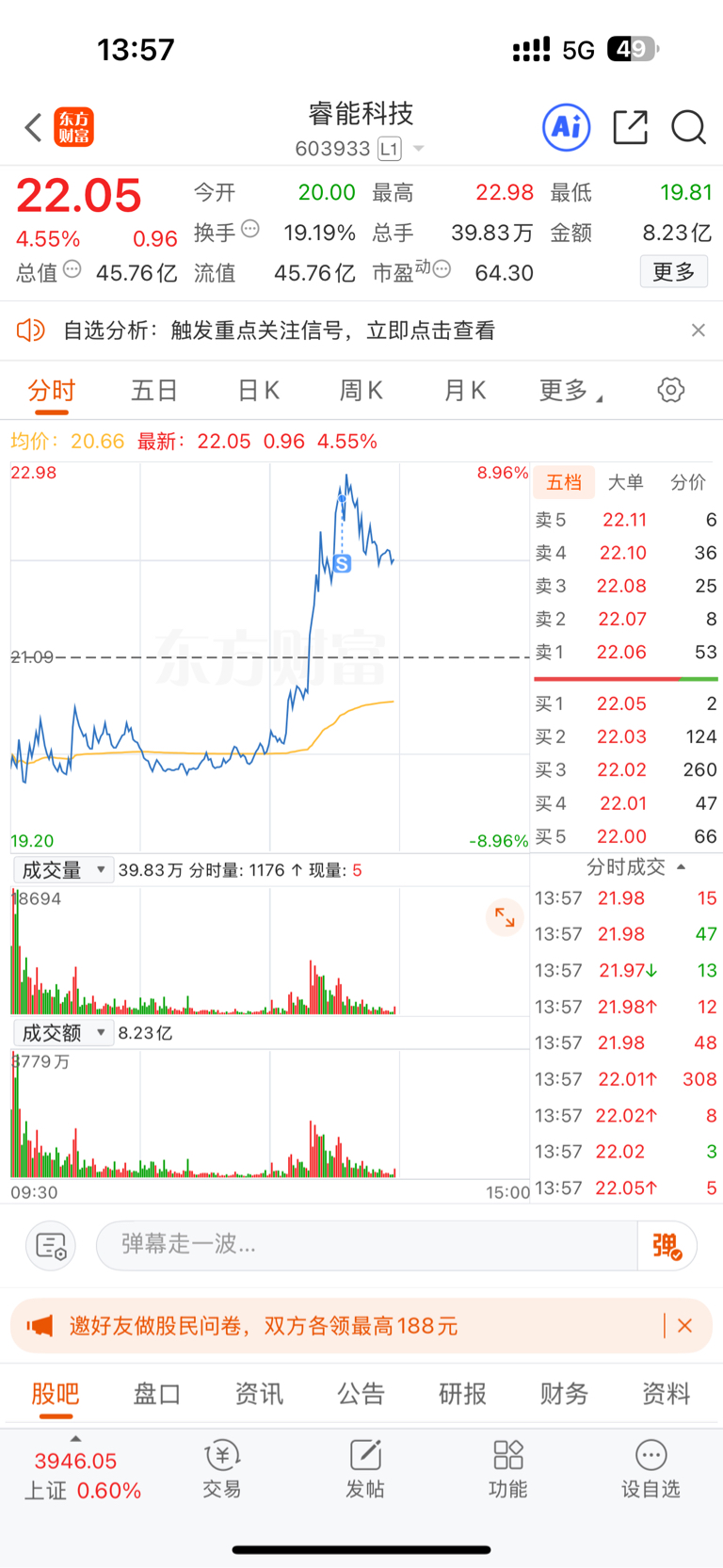 $睿能科技(SH603933)$ 安全逃顶,再也不碰这种股了