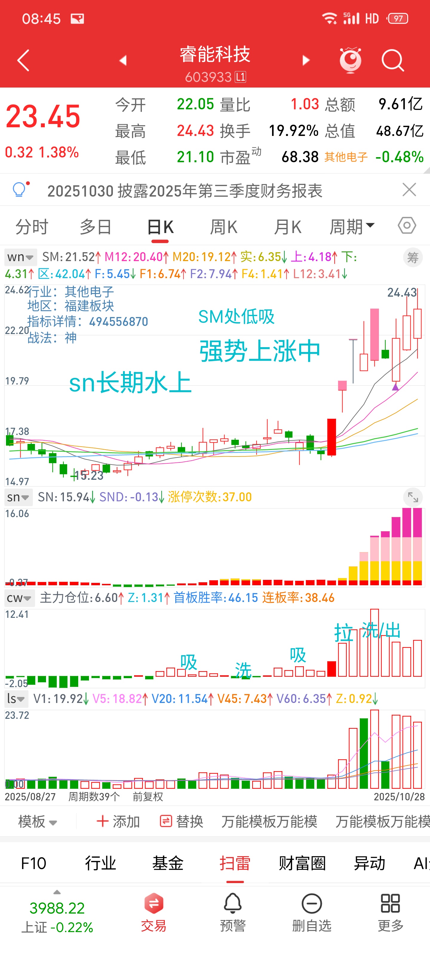 $睿能科技(SH603933)$ 这个很强,每天都是深水拉上来,这一定是有主力的,主力跑路之前一个板少不了。