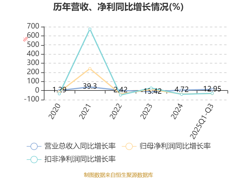 资产重大变化方面,截至2025年三季度末,公司其他流动资产较上年末减少72.16%,占公司总资产比重下降3.58个百分点;在建工程合计较上年末增加389.2%,占公司总资产比重上升3.58个百分点;长期待摊费用较上年末增加841.73%,占公司总资产比重上升1.12个百分点;应收款项融资较上年末减少19.28%,占公司总资产比重下降1.1个百分点。