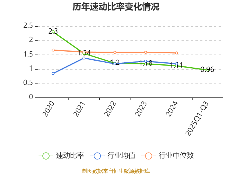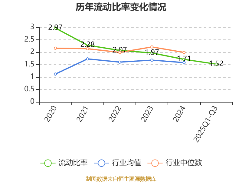 2025年前三季度,公司流动比率为1.52,速动比率为0.96。