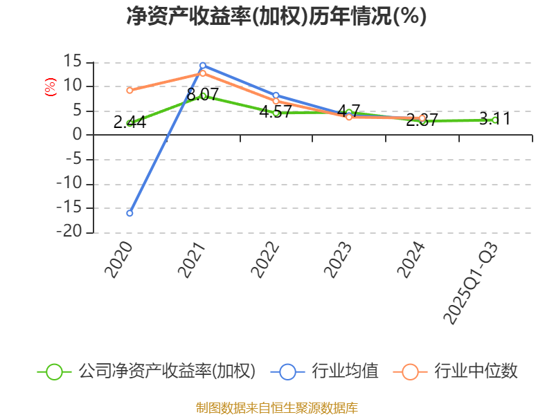 盈利能力方面, 2025年前三季度公司加权平均净资产收益率为3.11%,同比下降1.55个百分点。公司2025年前三季度投入资本回报率为2.7%,较上年同期下降1.13个百分点。