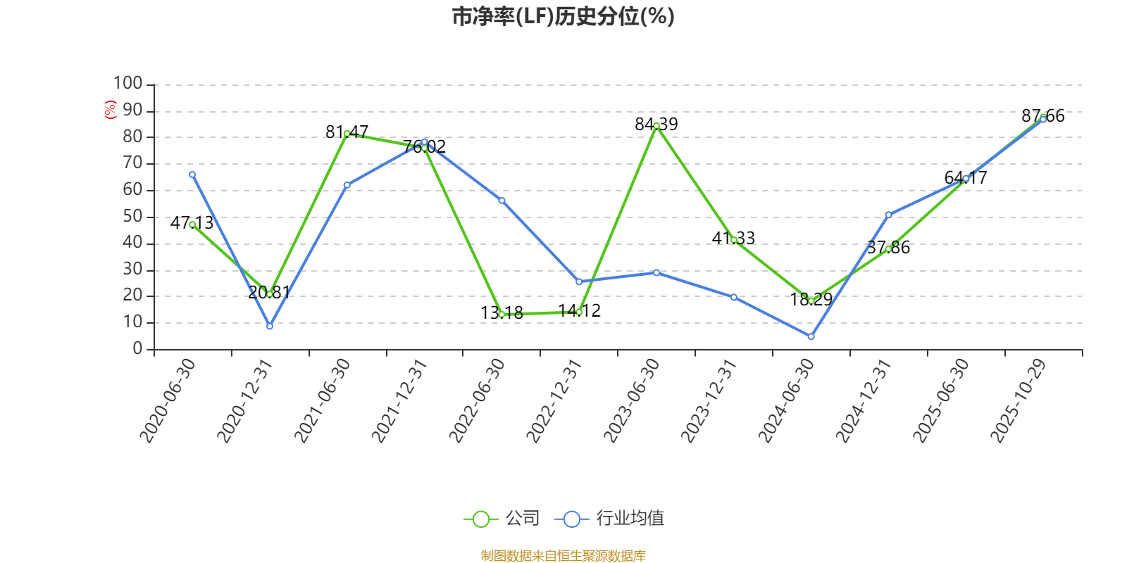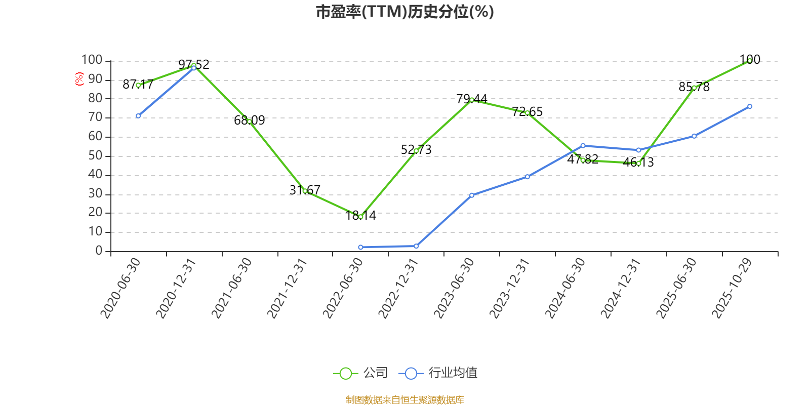 市盈率、市净率为负时,不显示当期分位数,会导致折线图中断。