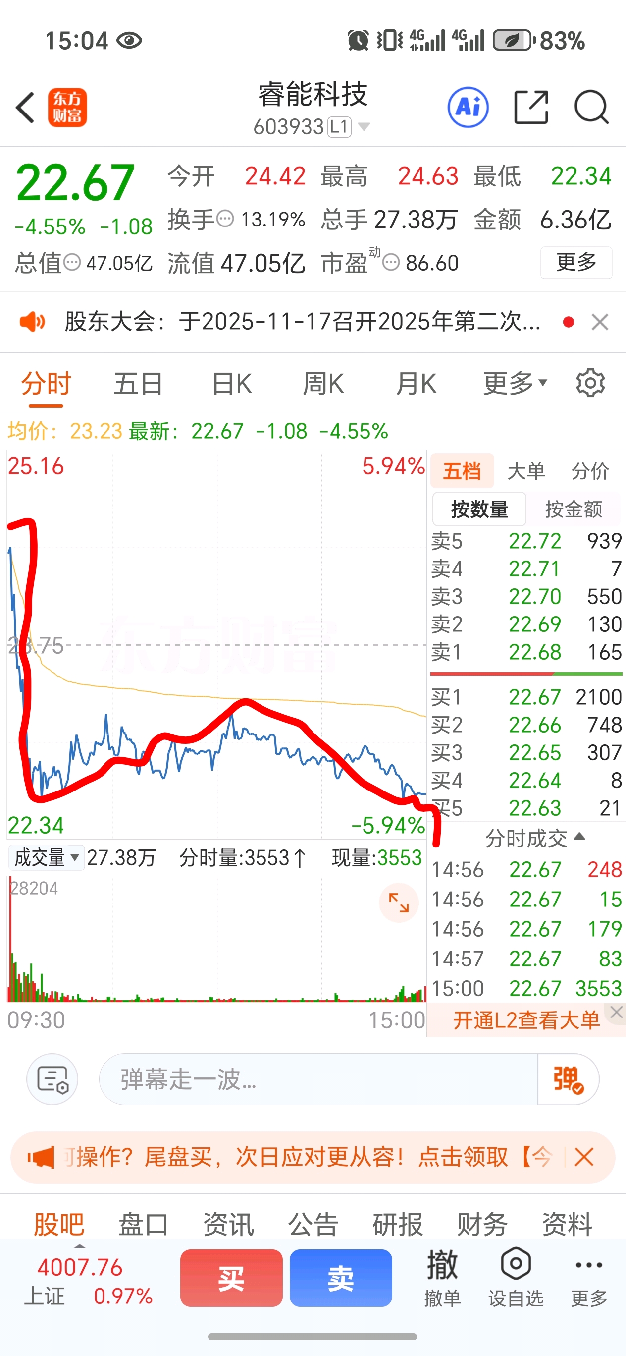 $睿能科技(SH603933)$ 杀猪厉害啊,有开盘进去的吗