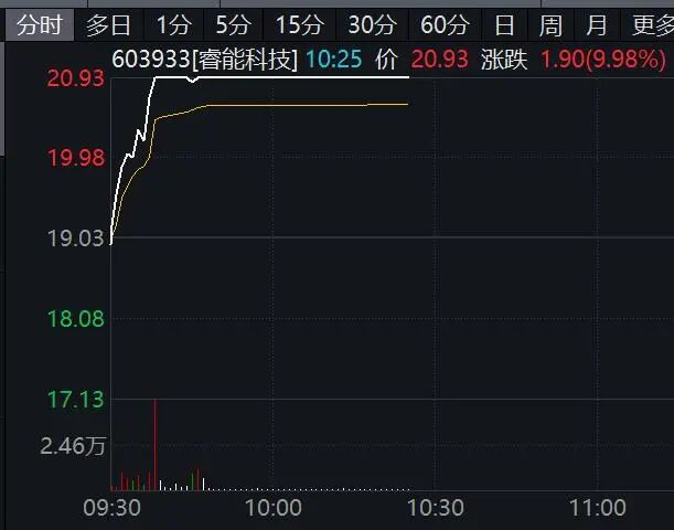 半导体芯片板块震荡走高,睿能科技涨停,希荻微、力芯微、国芯科技、海光信息等涨幅居前。