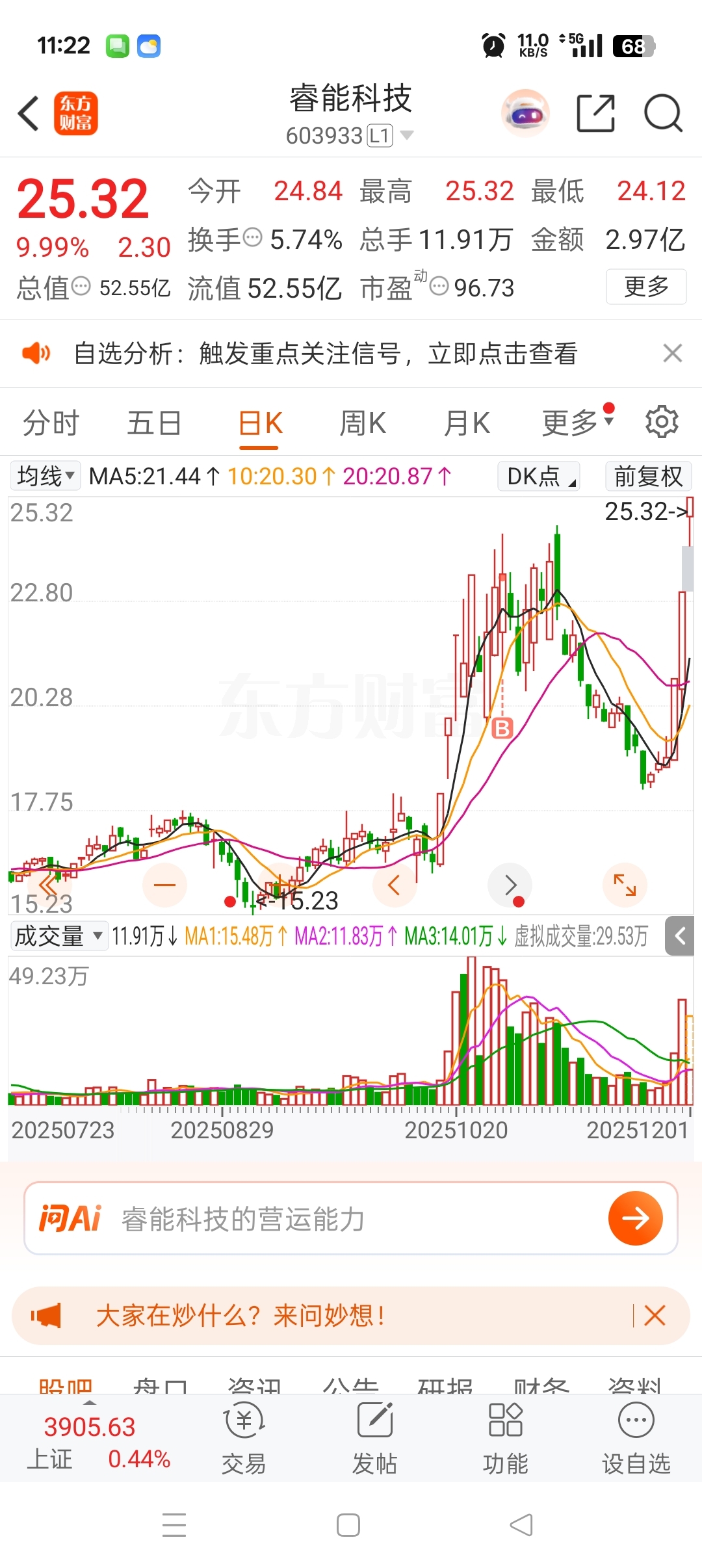 $睿能科技(SH603933)$ 请问这个小杂毛有什么说法么?谁能给个答案?