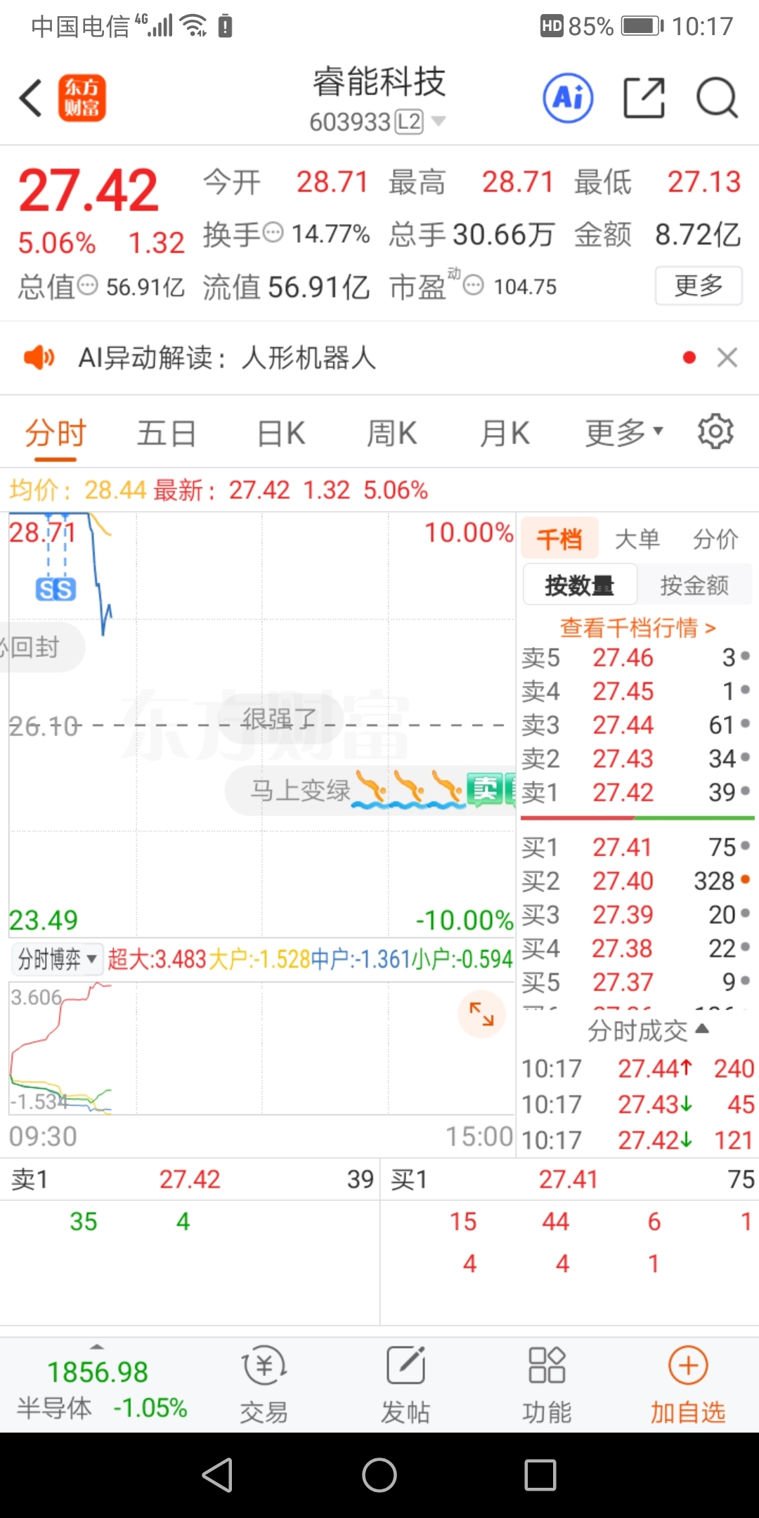 $睿能科技(SH603933)$ 要不要接回来??