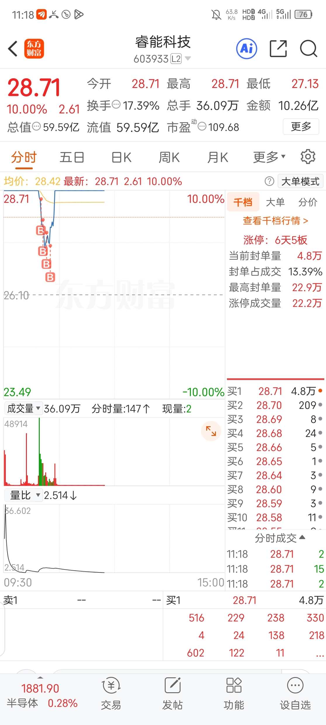 $睿能科技(SH603933)$ 去吧,全仓梭哈了。。。